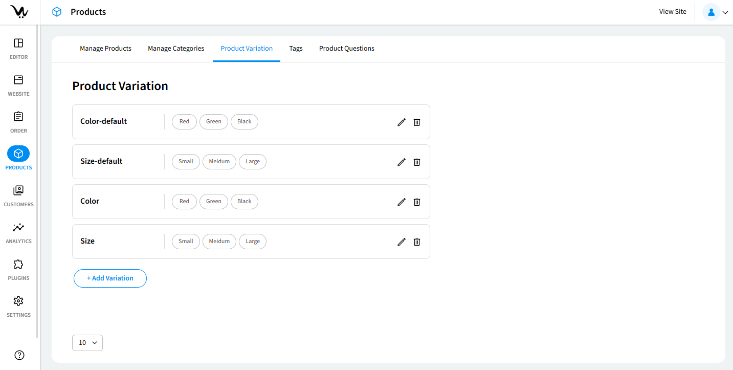 Product Variation allows you to define different options for a single product, such as color or size. These variations help customers easily select the right version of a product while improving inventory management and product organization.